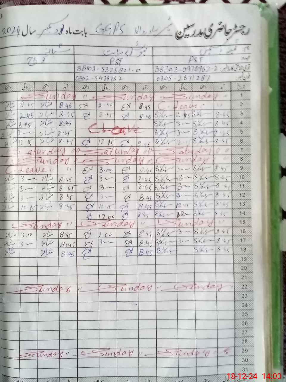 | CNIC | Full Name | Designation | R/C | Absence During Last Calender Month |