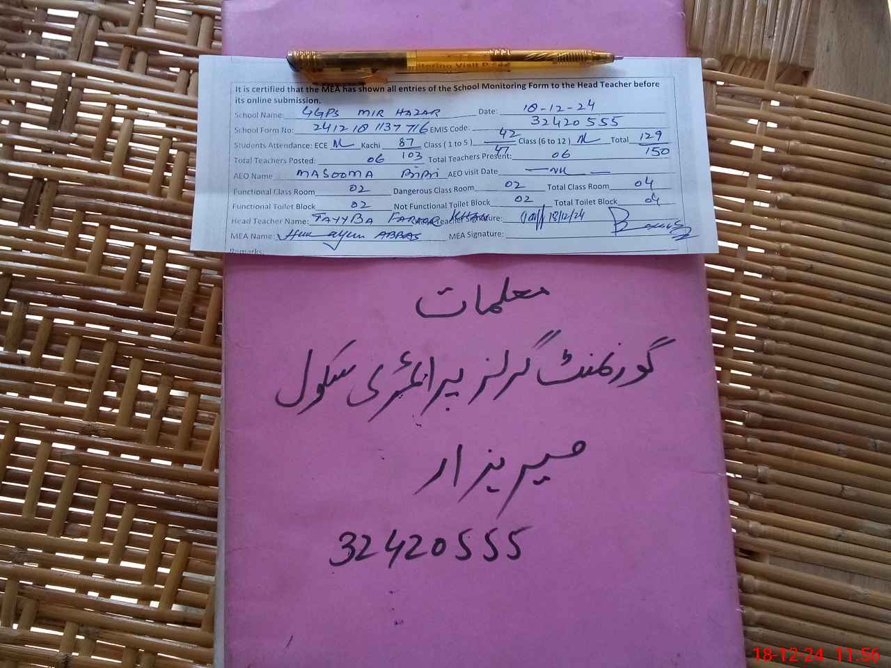 | EMIS Code: 32420555 | Name of School: GGPS MIR HAZAR | |||