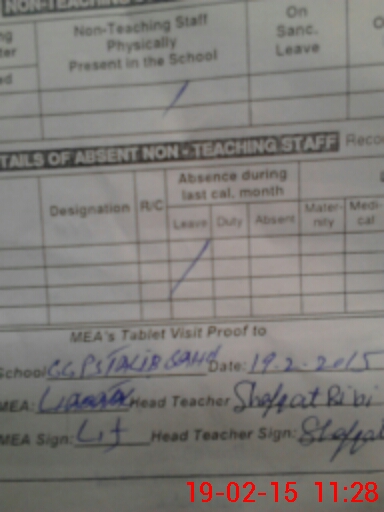 | Attendance Register | Head Teacher | MEA with School | Visit Proof |
