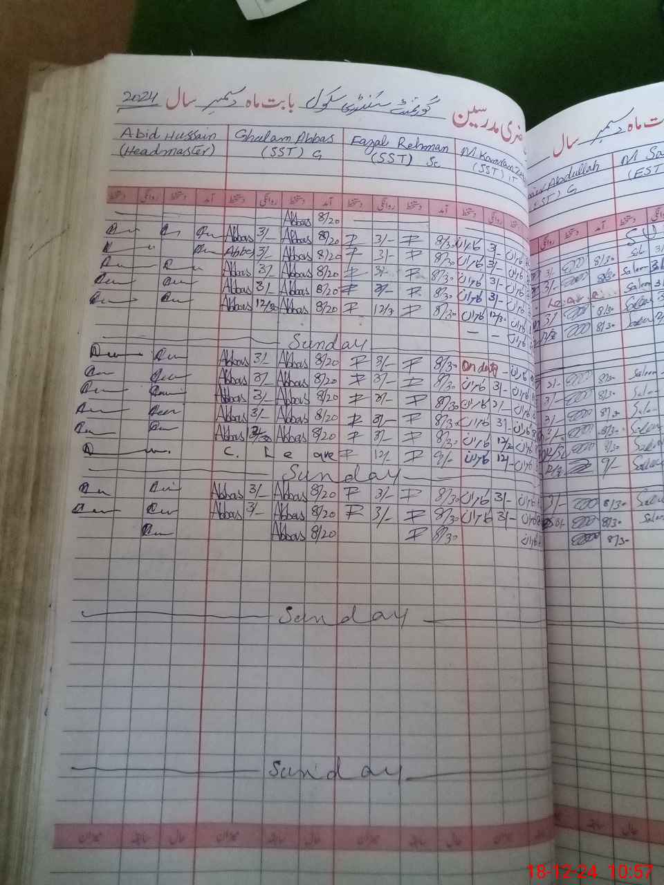 | CNIC | Full Name | Designation | R/C | Absence During Last Calender Month |