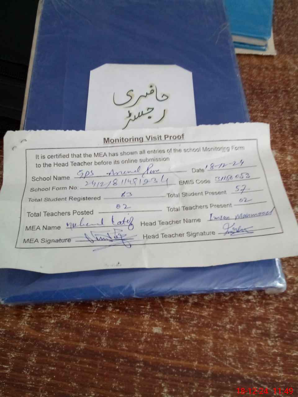 | EMIS Code: 31150053 | Name of School: GPS ANNAD PUR | |||