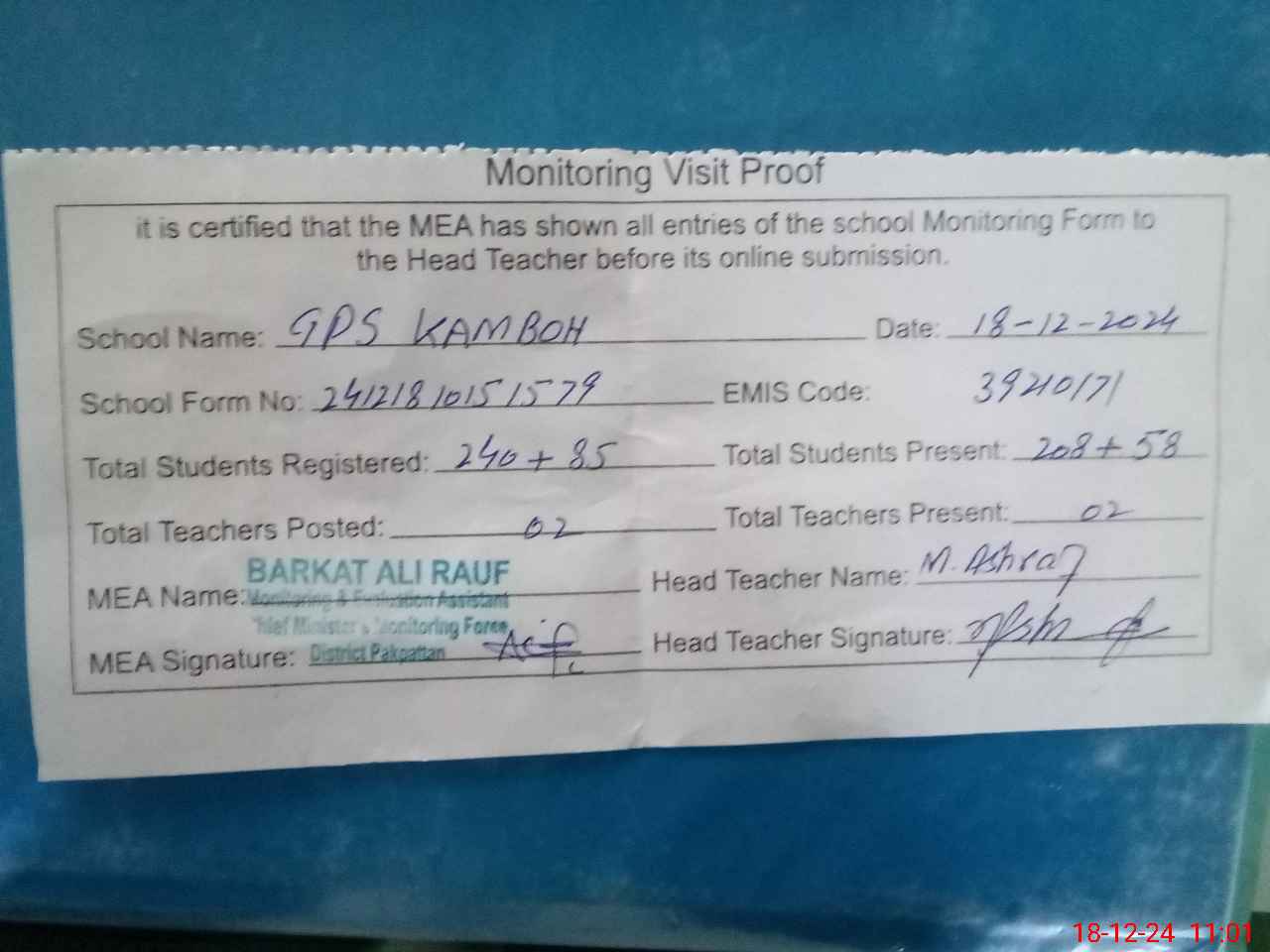 | EMIS Code: 39210171 | Name of School: GPS CHAK KAMBOH PO PAKPATTAN | |||