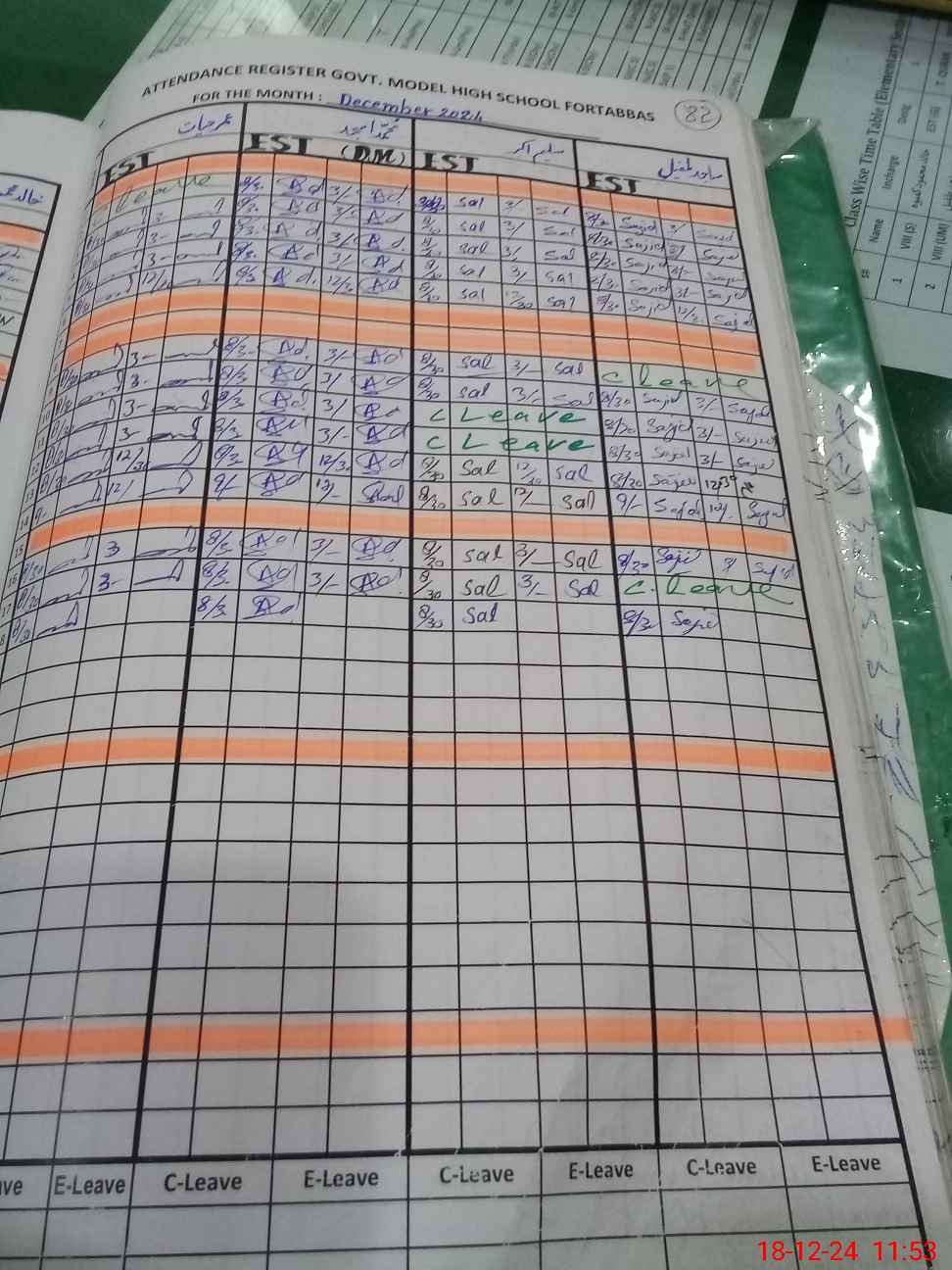 | CNIC | Full Name | Designation | R/C | Absence During Last Calender Month |