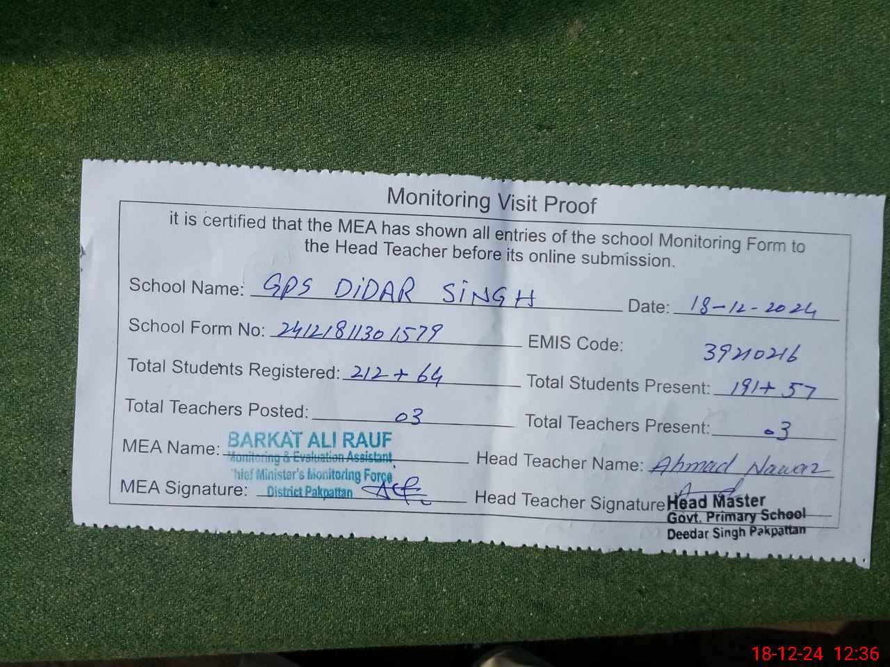 | EMIS Code: 39210216 | Name of School: GPS DIDAR SINGH | |||
