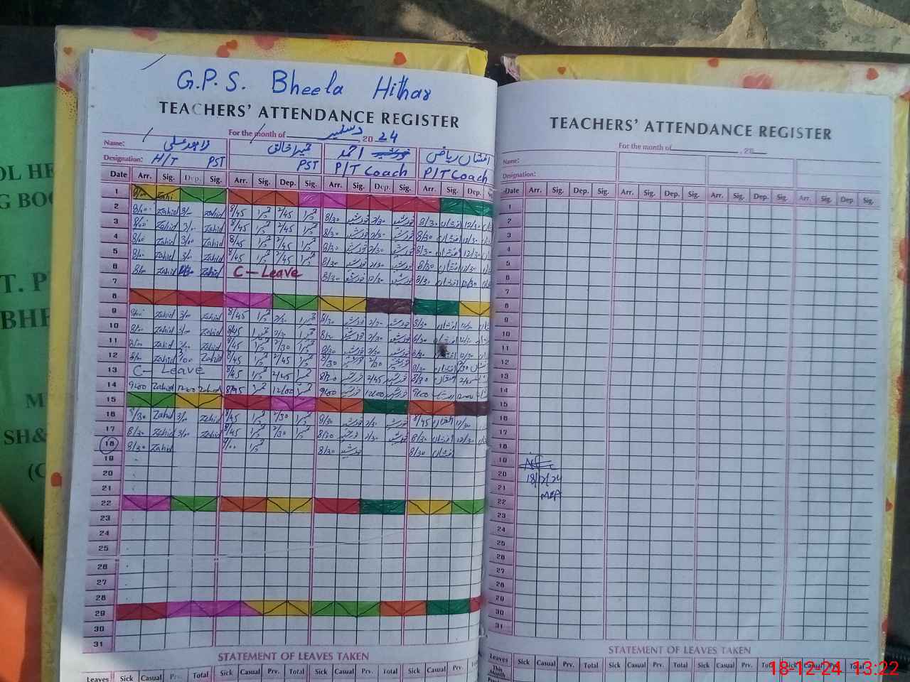 | Leave | Duty | Absent | Maternity | Medical | Ex- Pak |