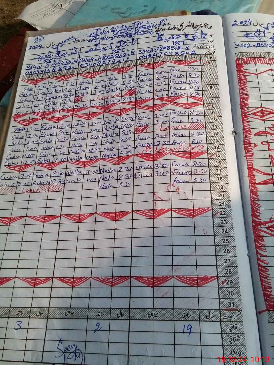 | Leave | Duty | Absent | Maternity | Medical | Ex- Pak |