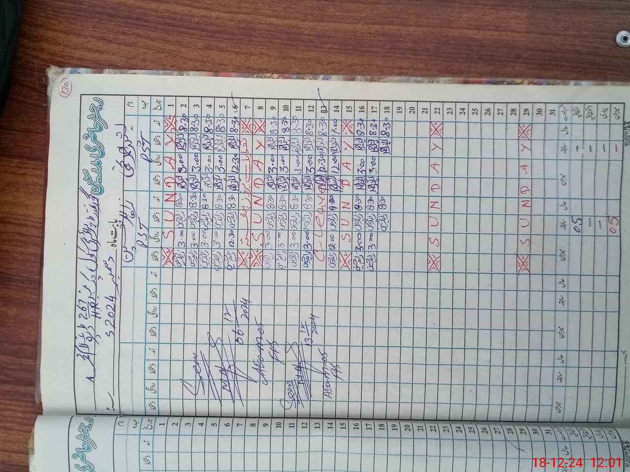 | CNIC | Full Name | Designation | R/C | Absence During Last Calender Month |