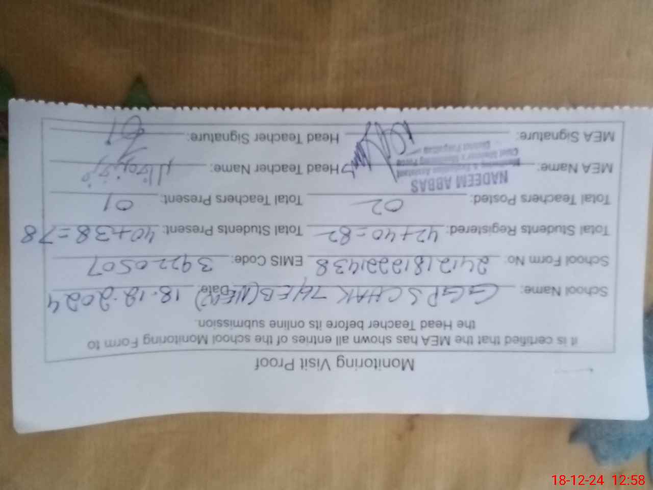 | EMIS Code: 39220507 | Name of School: GGPS CHAK NO. 76/EB (NEW) | |||