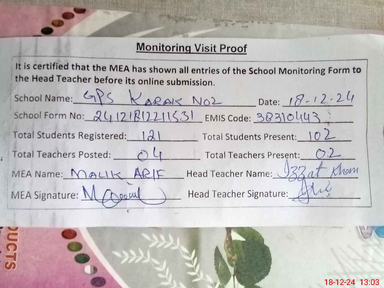 | EMIS Code: 38310443 | Name of School: GPS KARAK NO.2 | |||