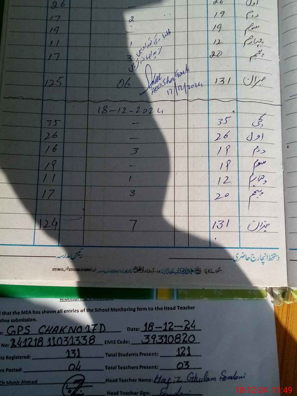 | EMIS Code: 39310820 | Name of School: GPS CHAK NO. 17-D | |||