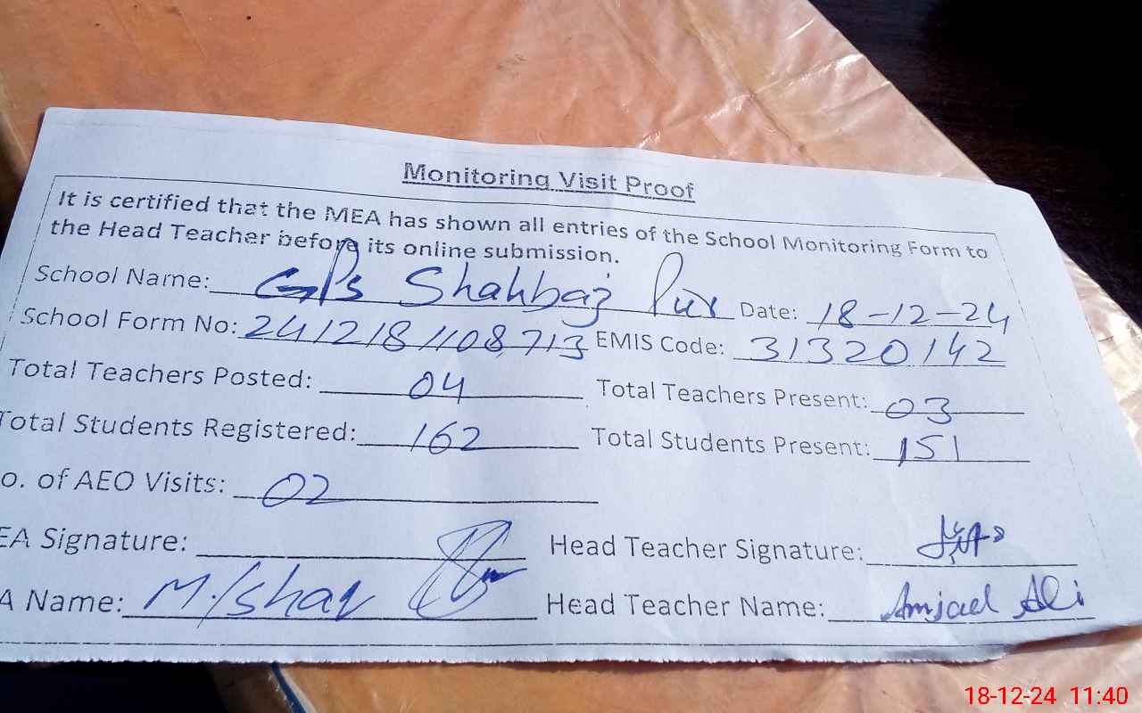 | EMIS Code: 31320145 | Name of School: GPS SHAHBAZ PUR SHARQI | |||