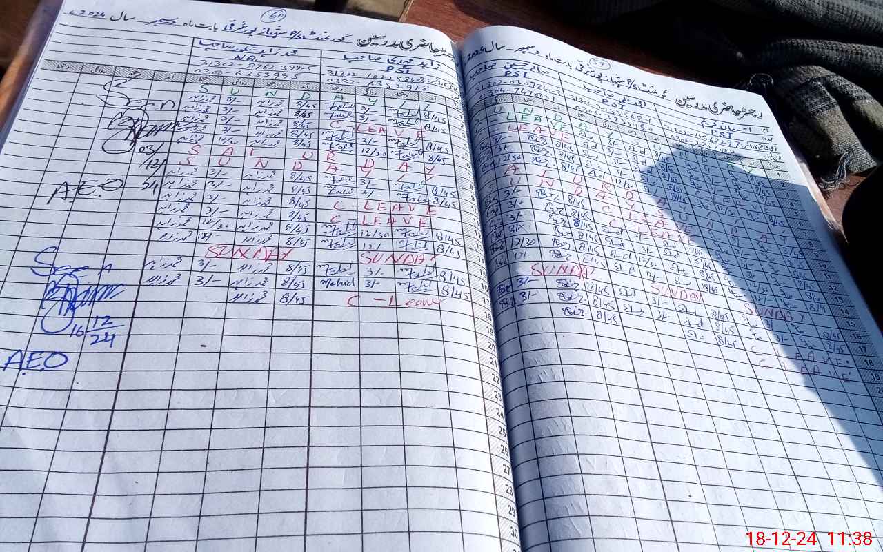 | CNIC | Full Name | Designation | R/C | Absence During Last Calender Month |
