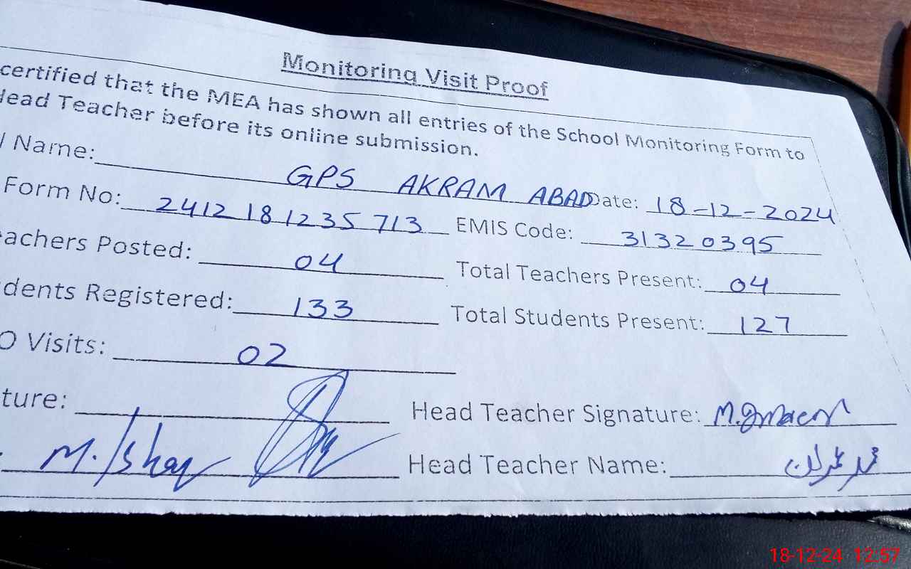 | EMIS Code: 31320395 | Name of School: GPS AKRAM ABAD | |||