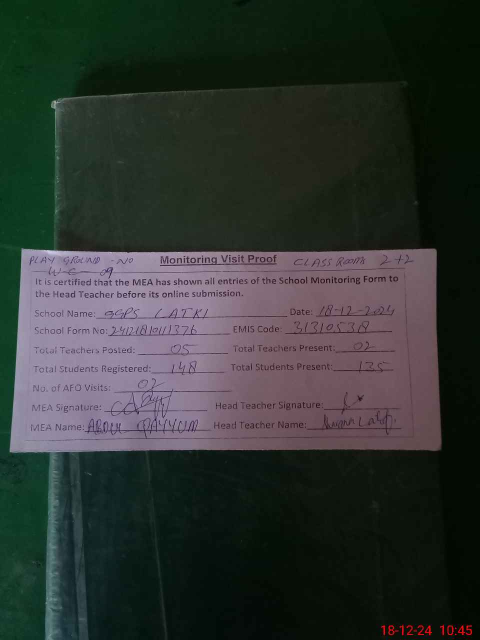| EMIS Code: 31310538 | Name of School: GGPS LATKI | |||