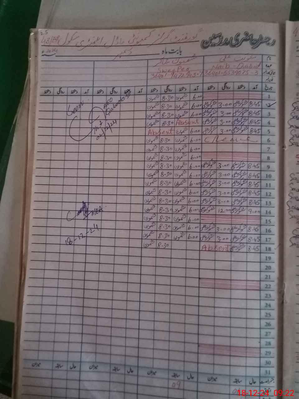 | Name: SH**** KA**** Designation: (School Headmaster's/Headmistress's) S.S.T.(GENERAL) Phone/Cell Number: 03**** |