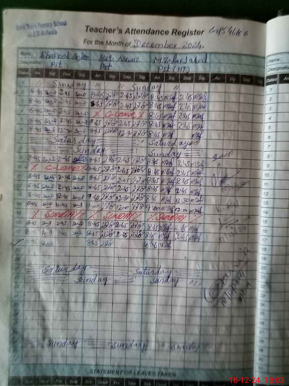| Name: MU**** ZA**** IQ**** Designation: (School Headmaster's/Headmistress's) PST Phone/Cell Number: 03**** |
