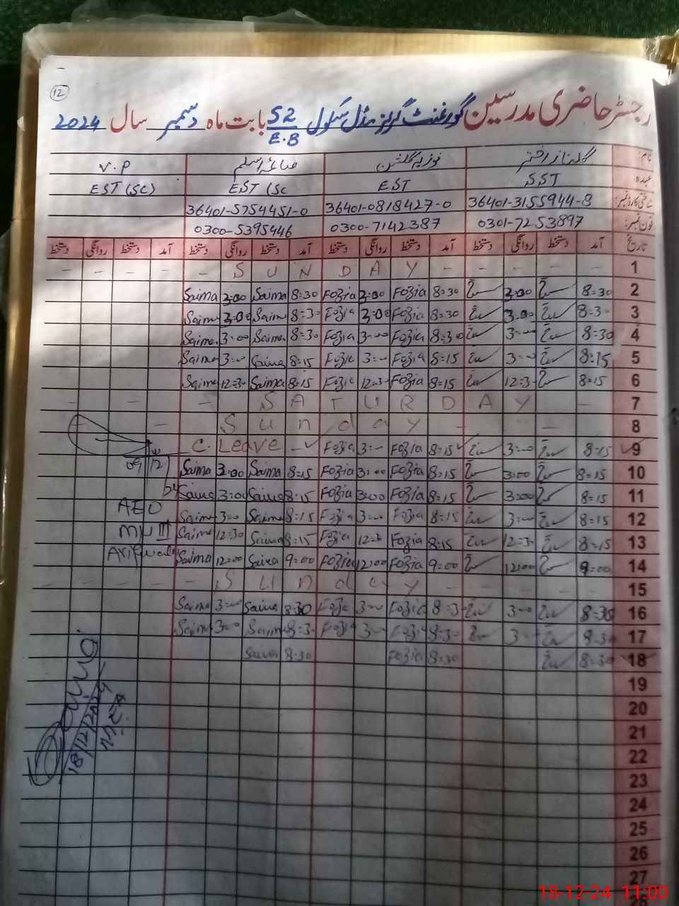 | Name: GU**** AK**** Designation: (School Headmaster's/Headmistress's) SST (GENERAL) Phone/Cell Number: 03**** |
