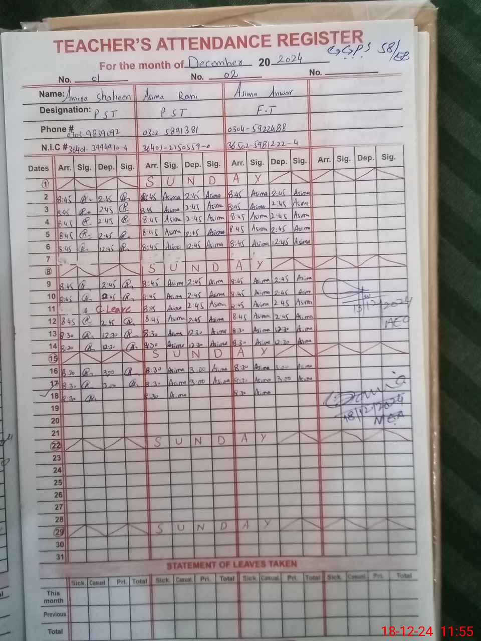 | Name: AM**** SH**** Designation: (School Headmaster's/Headmistress's) PST Phone/Cell Number: 03**** |
