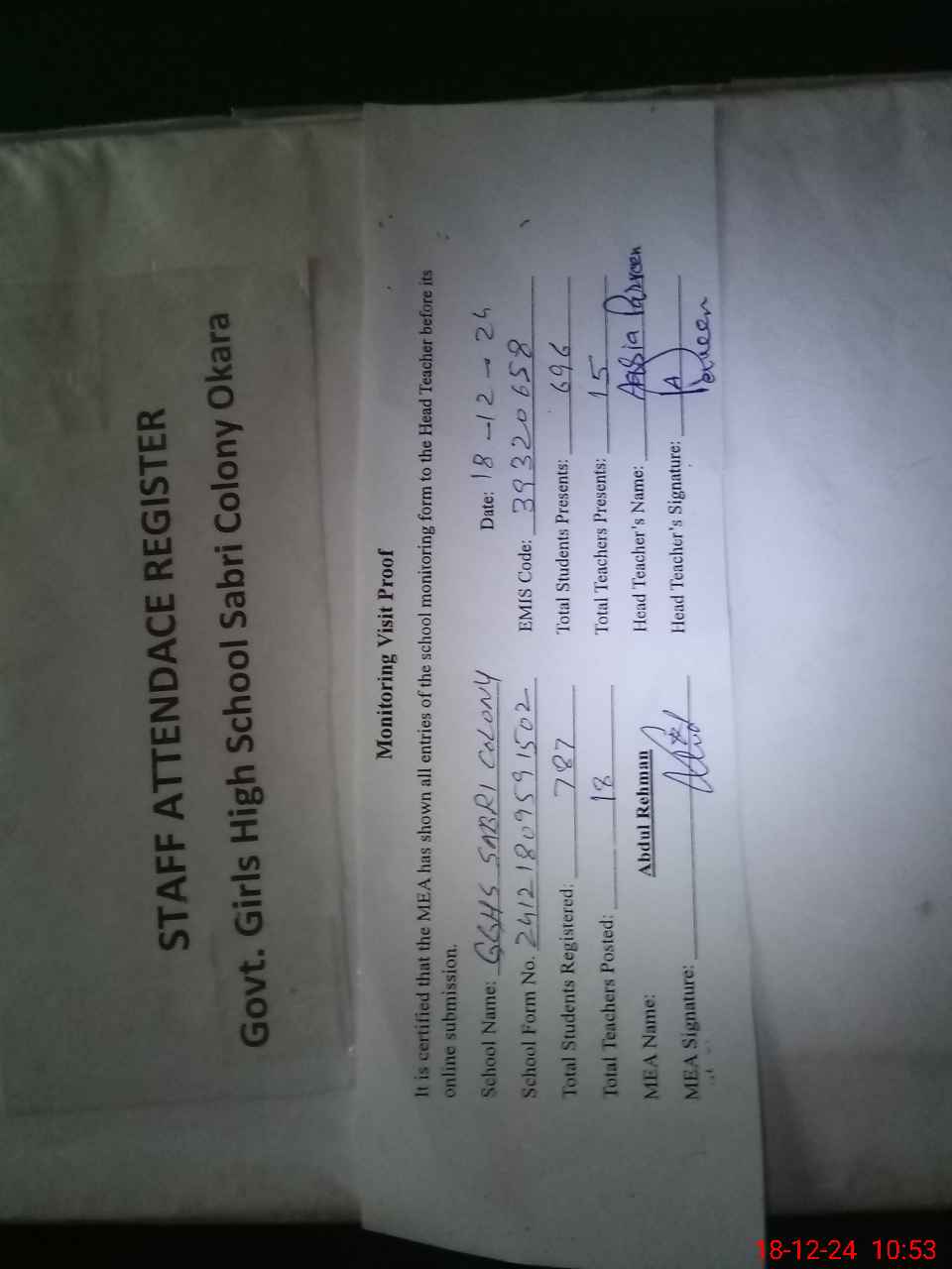 | EMIS Code: 39320658 | Name of School: GGHS SABRI COLONY | |||