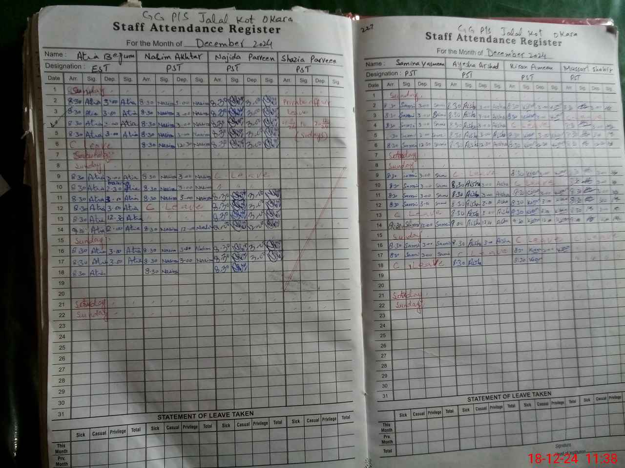 | 35**** | Sa**** Ya**** | PST | Regular | 2 | 0 | 0 | 0 | 0 | 0 | 0 | 0 | 2 | Casual |