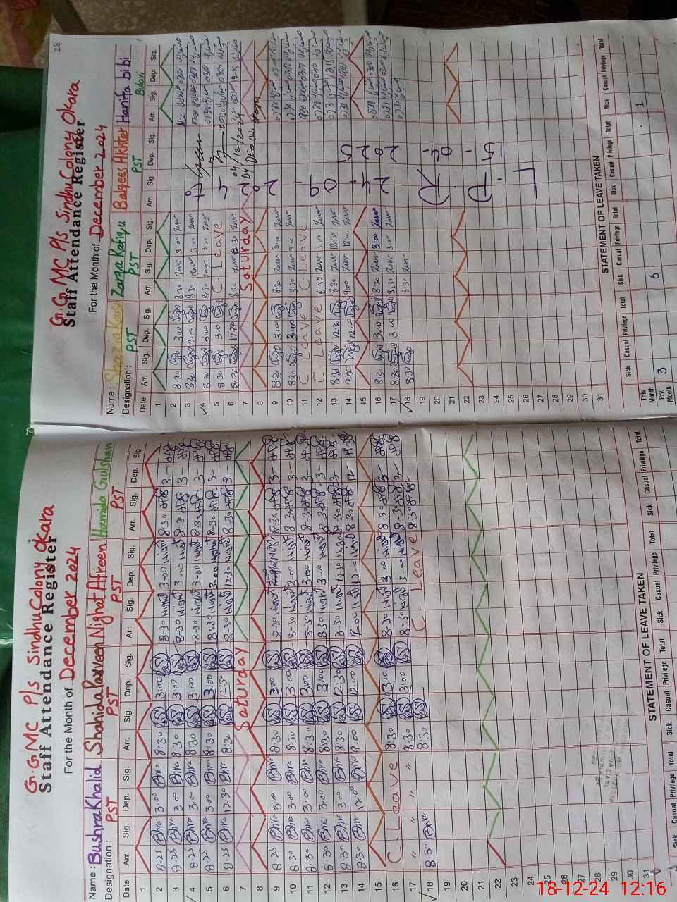 | Leave | Duty | Absent | Maternity | Medical | Ex- Pak |