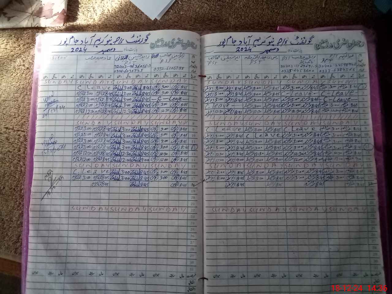 | CNIC | Full Name | Designation | R/C | Absence During Last Calender Month |