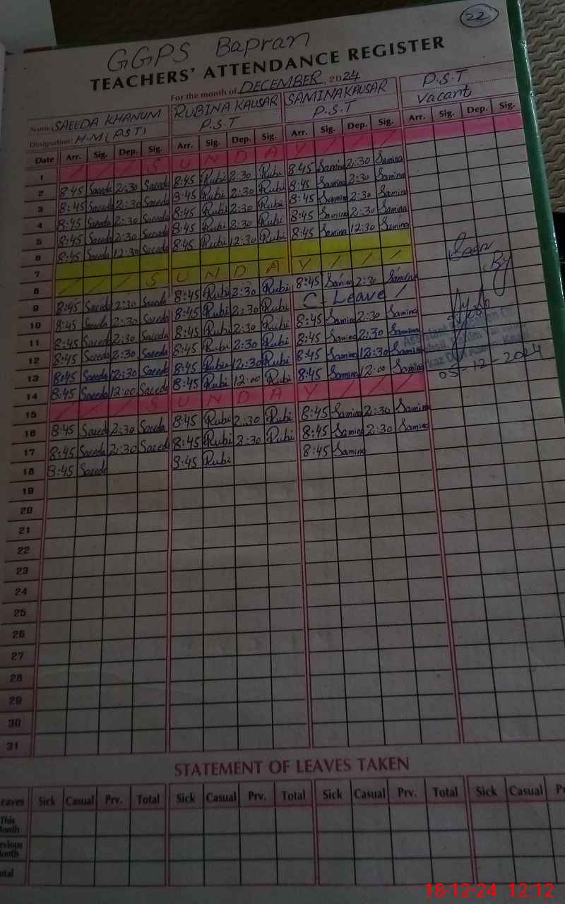 | 31**** | Ay**** Ir**** | PST | Regular | 0 | 0 | 30 | 0 | 0 | 0 | 0 | 0 | 0 | Absent (Un-Authorized) |