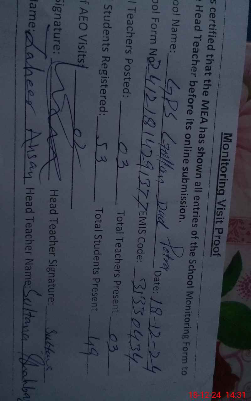 | EMIS Code: 31330434 | Name of School: GPS GULLAN DAD PUTRA | |||