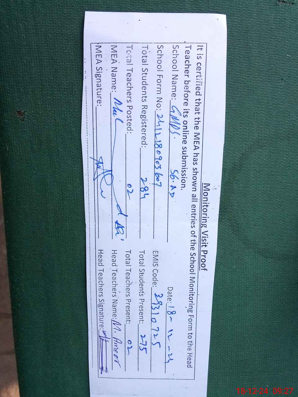 | EMIS Code: 39310725 | Name of School: GMPS CHAK NO. 56/AD | |||