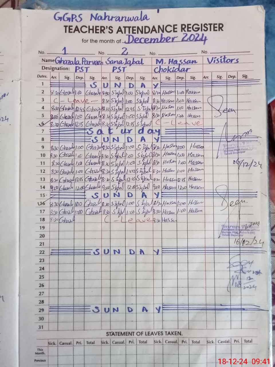 | EMIS Code: 39310708 | Name of School: GGPS NAHRAN WALA | |||