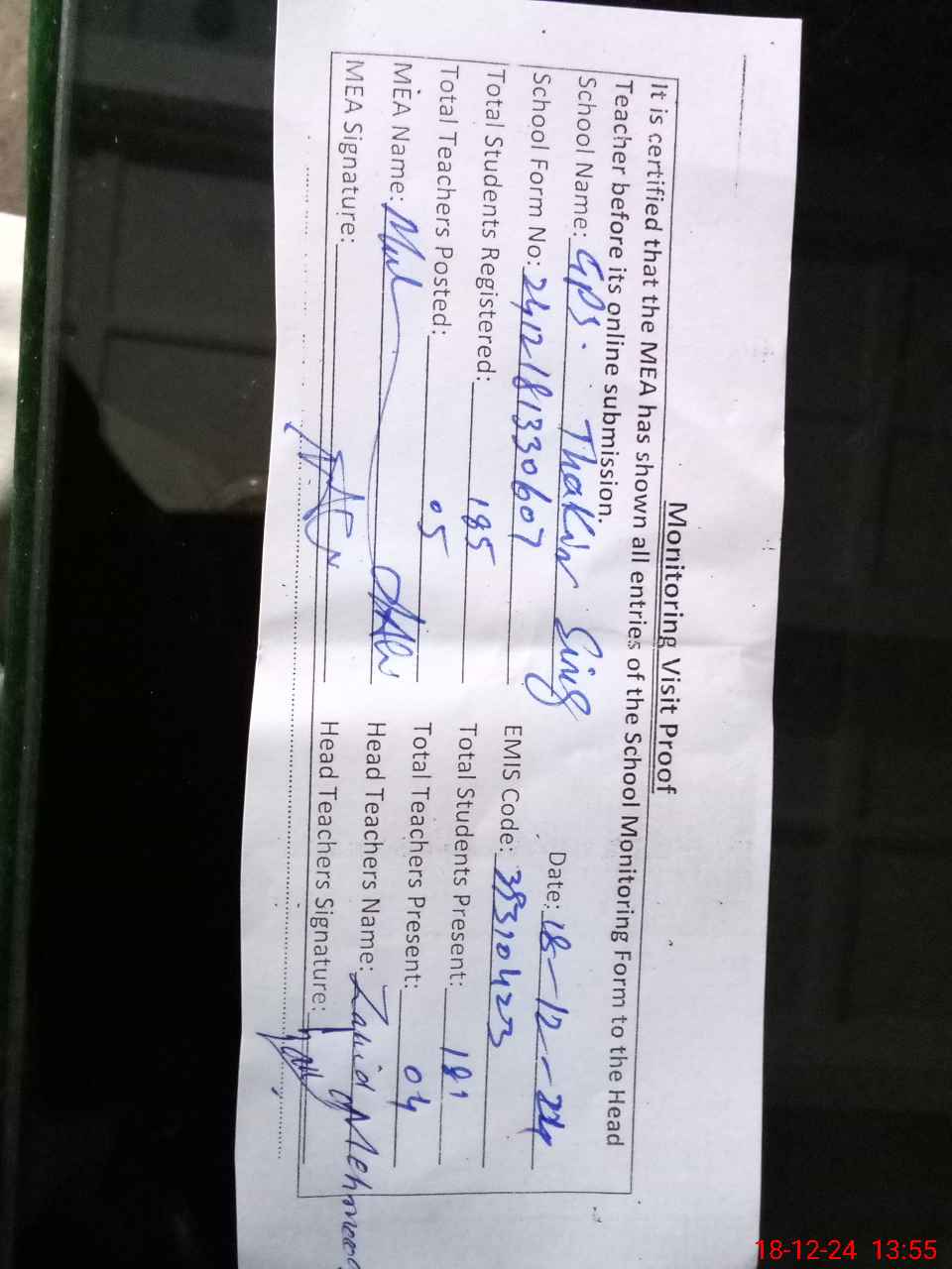 | EMIS Code: 39310423 | Name of School: GPS THAKAR SINGH | |||