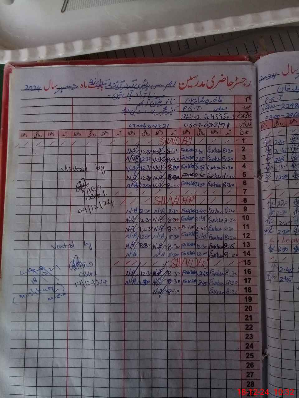 | Name: Sh**** Ro**** Designation: (School Headmaster's/Headmistress's) PST Phone/Cell Number: 03**** |