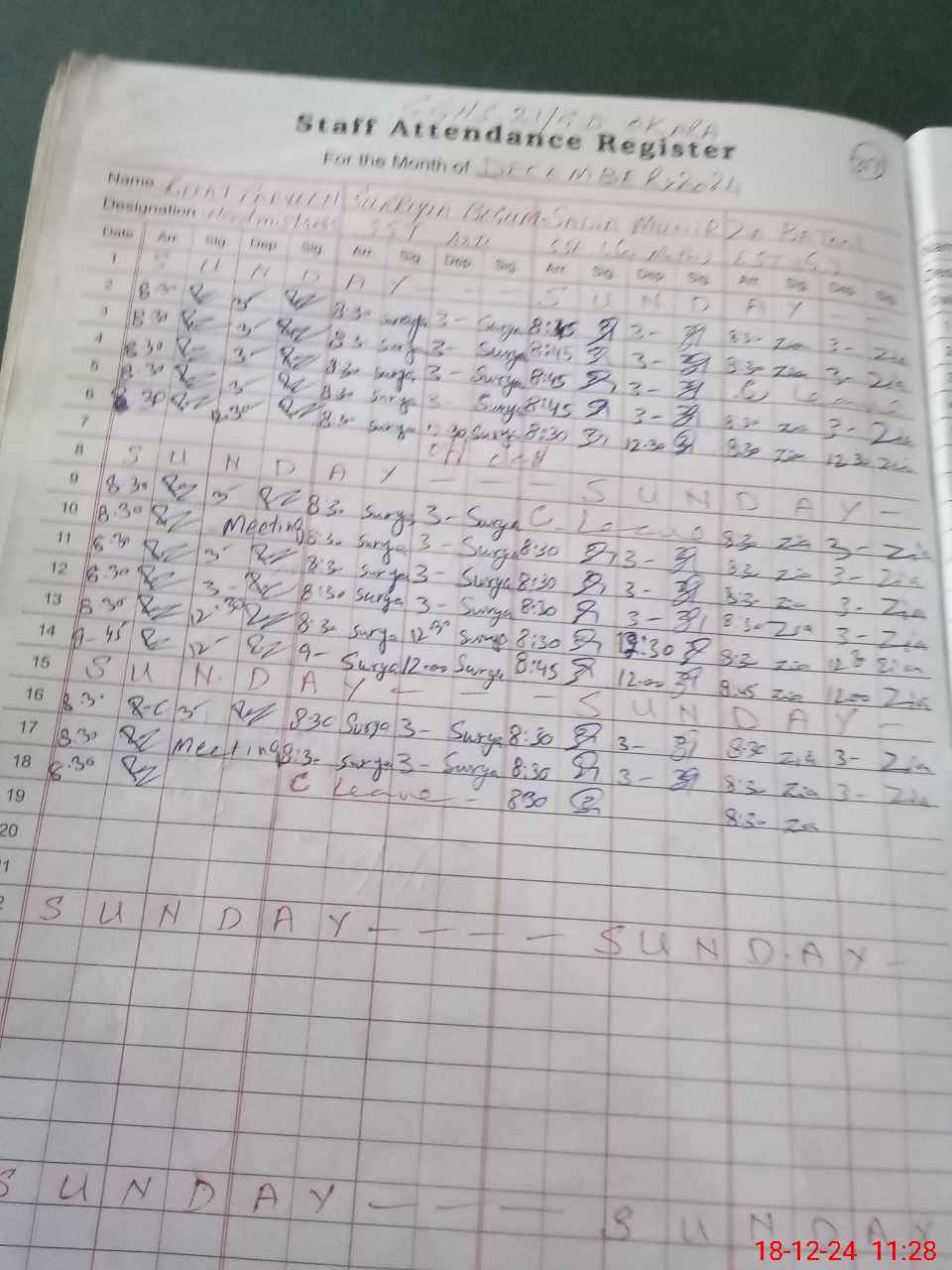 | CNIC | Full Name | Designation | R/C | Absence During Last Calender Month |
