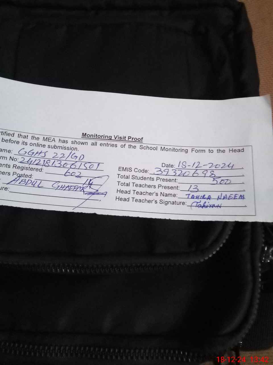 | Name: Ta**** Na**** Designation: (School Headmaster's/Headmistress's) SST Phone/Cell Number: 03**** |