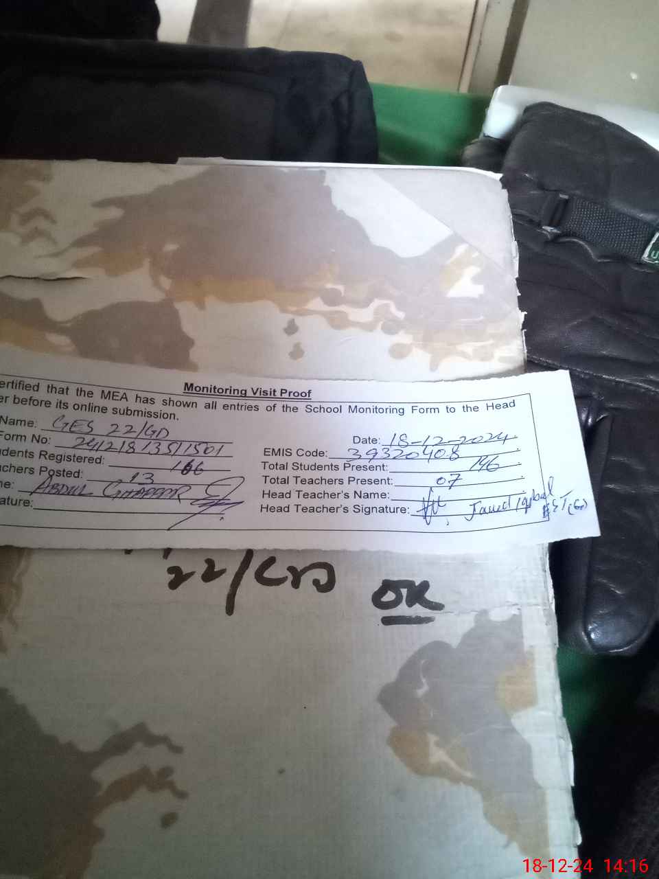 | EMIS Code: 39320408 | Name of School: GES CHAK NO. 22/G.D | |||