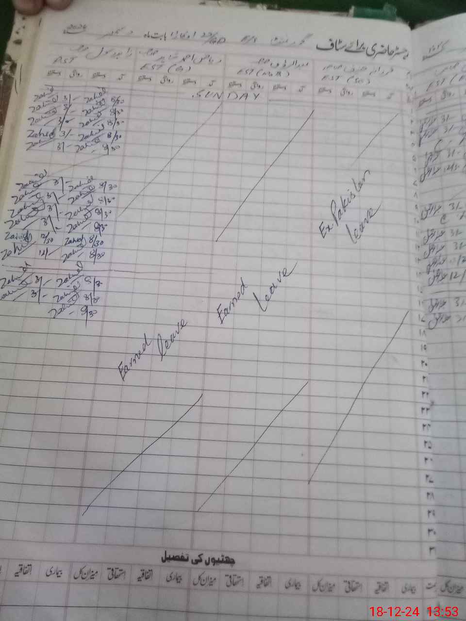 | CNIC | Full Name | Designation | R/C | Absence During Last Calender Month |