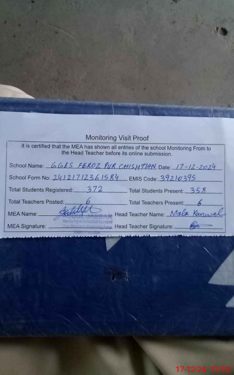 | EMIS Code: 39210395 | Name of School: GGES FEROZ PUR CHISHTIAN | |||