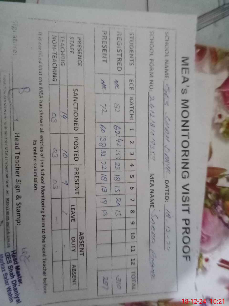 | EMIS Code: 36410317 | Name of School: GES SHAH DHANIYAL NAWAN SHEHR | |||