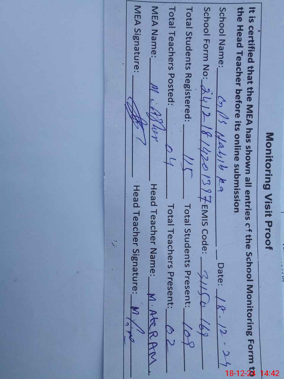 | EMIS Code: 31150169 | Name of School: GPS HABIB KA | |||