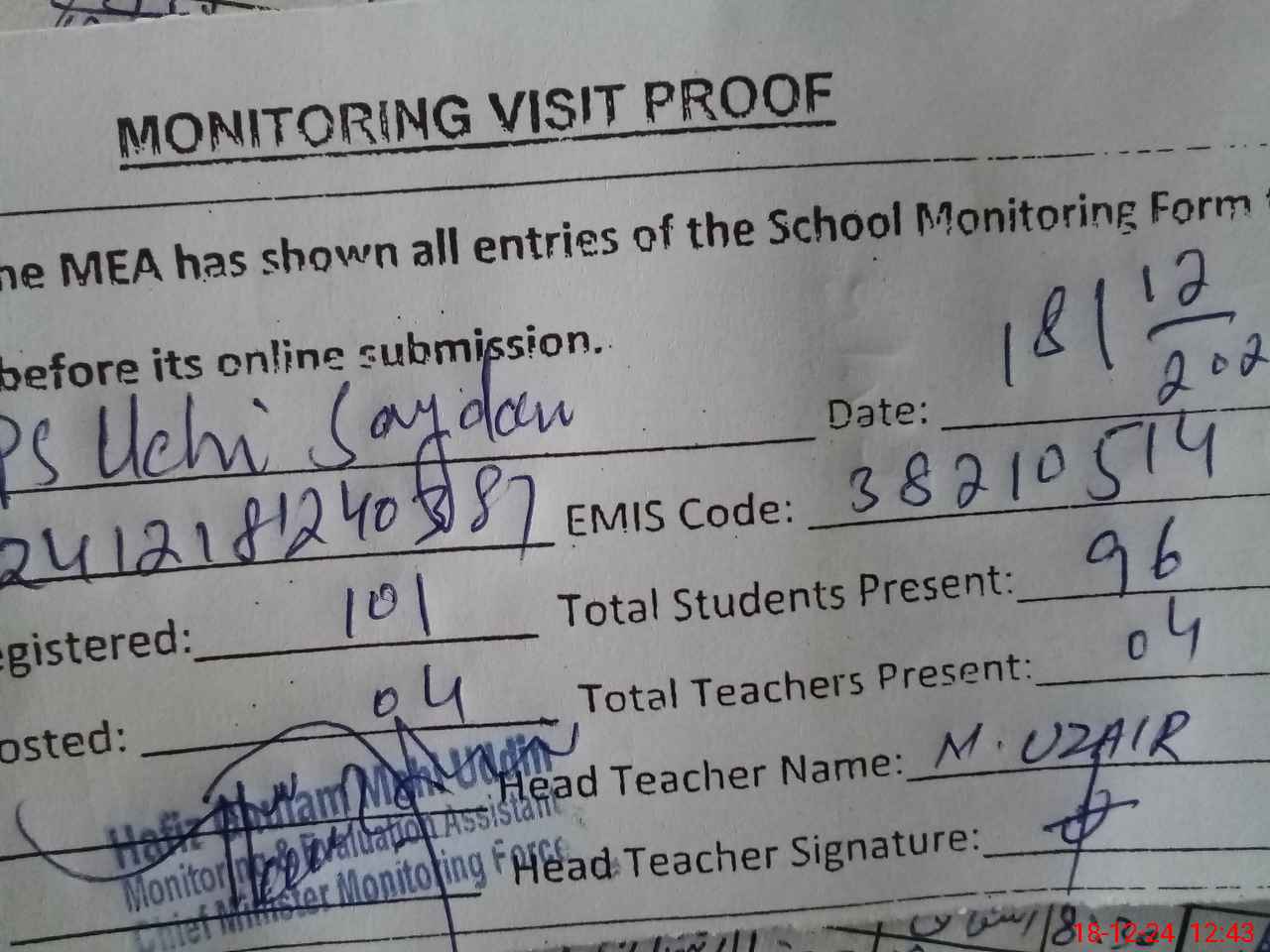| EMIS Code: 38210514 | Name of School: GPS UCHI SAYEDAN | |||