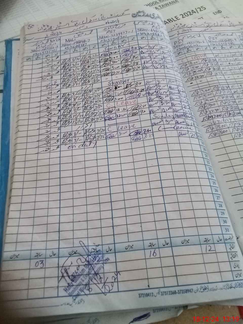 | CNIC | Full Name | Designation | R/C | Absence during last cal. month |