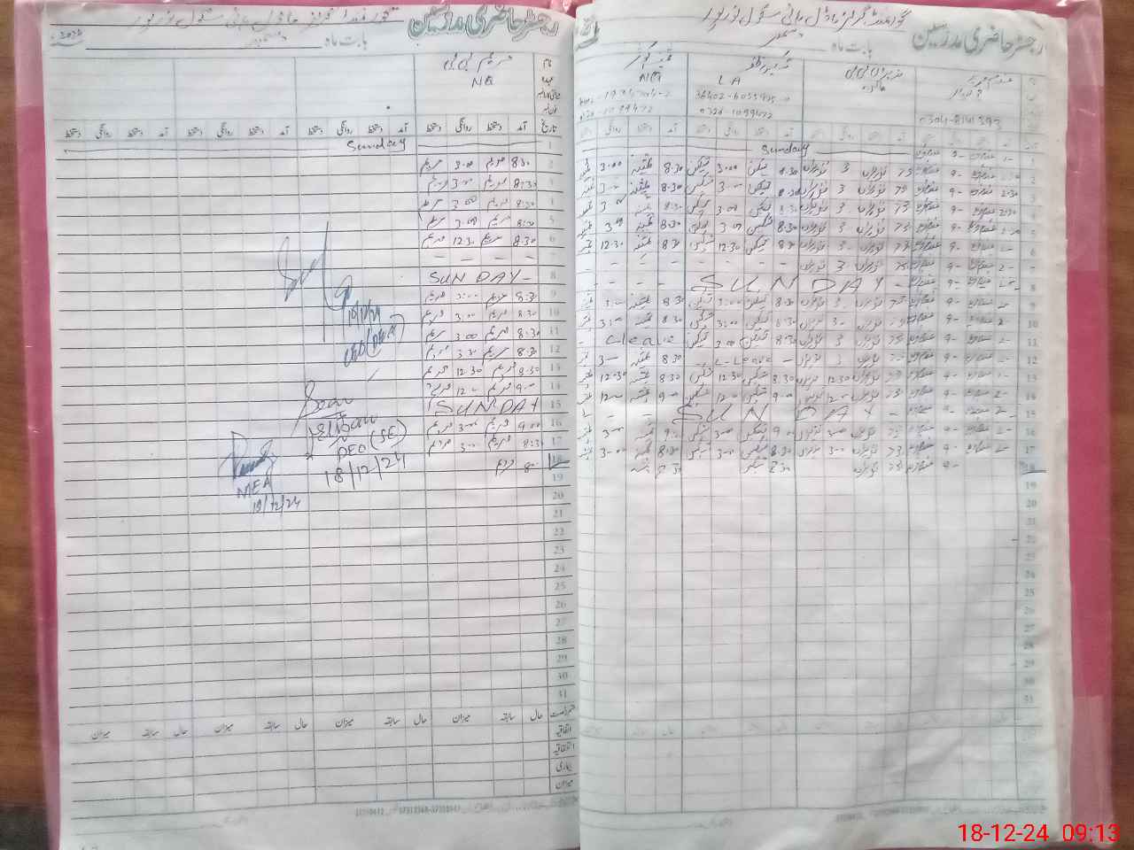 | CNIC | Full Name | Designation | R/C | Absence During Last Calender Month |