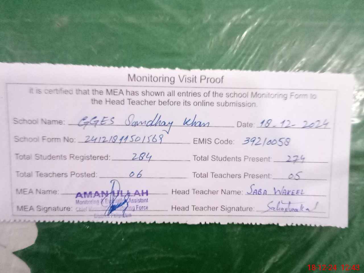 | EMIS Code: 39210058 | Name of School: GGES SANDHAY KHAN | |||