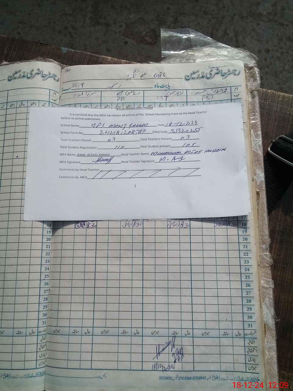 | EMIS Code: 35420255 | Name of School: GPS MANJ GHAGGAR | |||