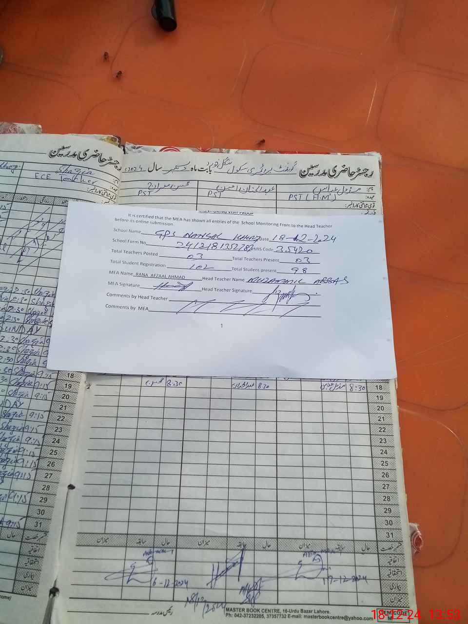 | Attendance Register | Head Teacher | MEA with School | Visit Proof |
