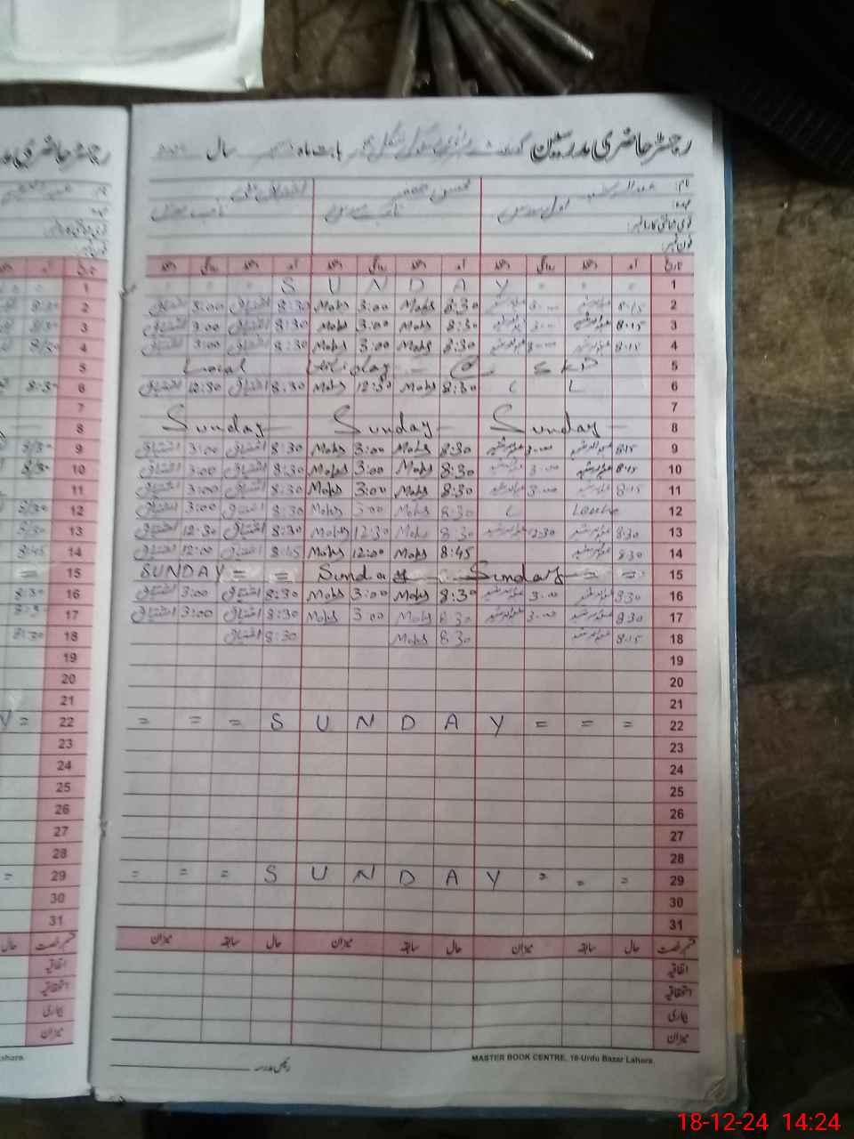 | CNIC | Full Name | Designation | R/C | Absence During Last Calender Month |