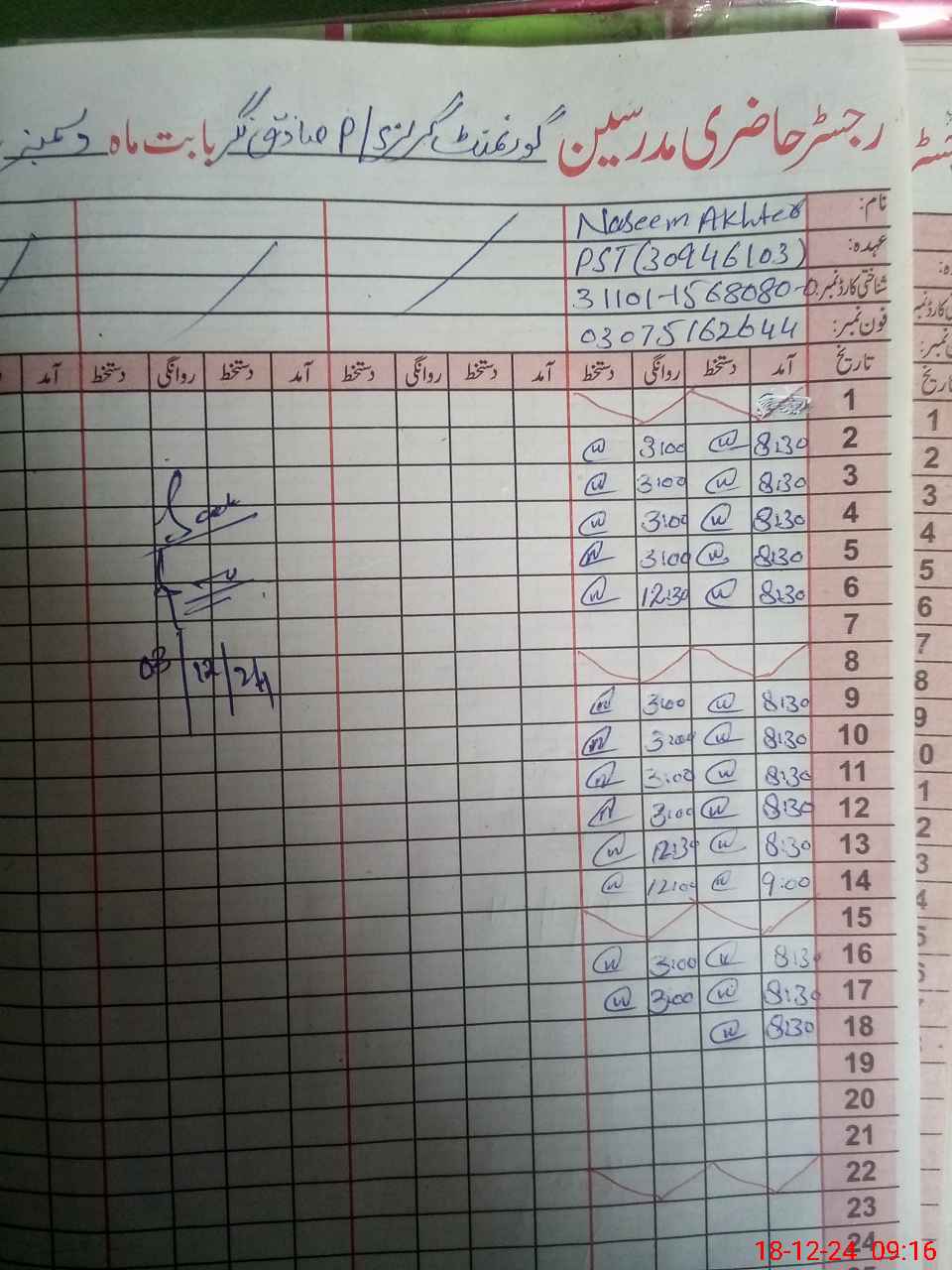 | Name: NA**** AK**** Designation: (School Headmaster's/Headmistress's) PST Phone/Cell Number: 03**** |