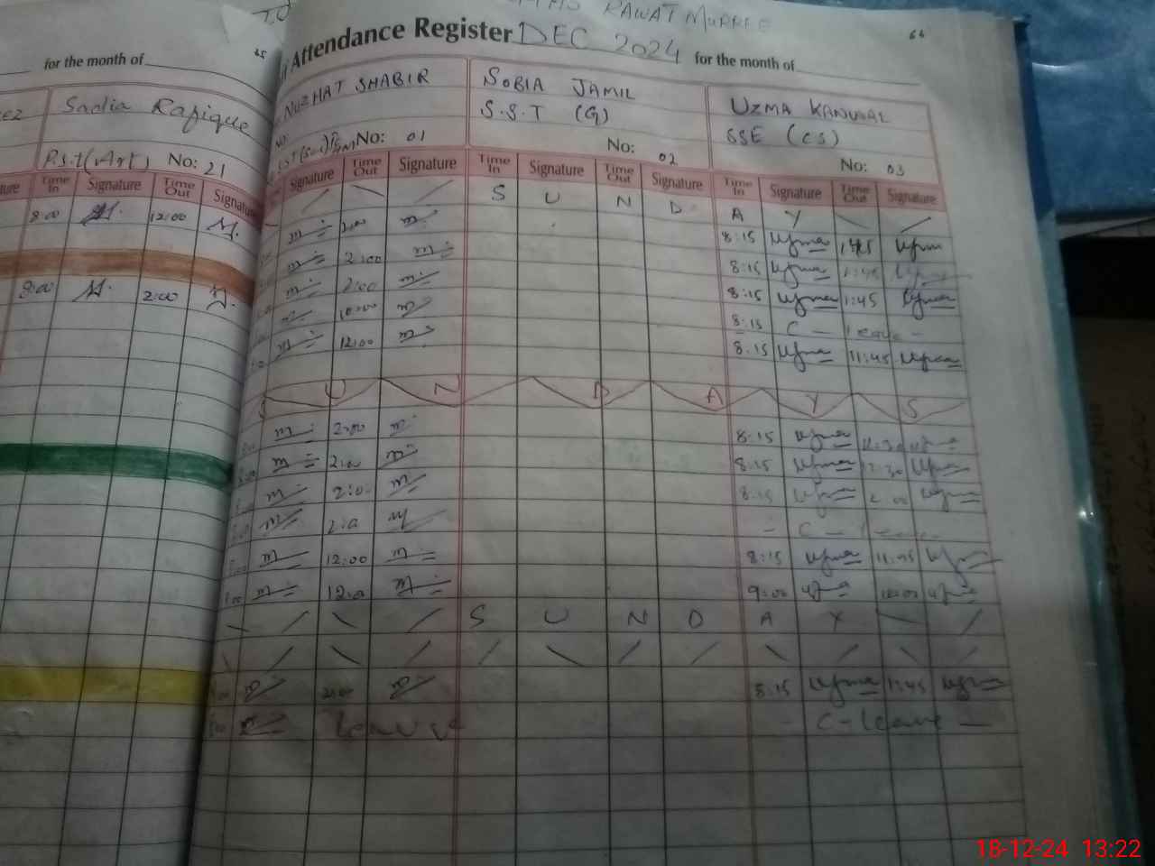 | CNIC | Full Name | Designation | R/C | Absence During Last Calender Month |