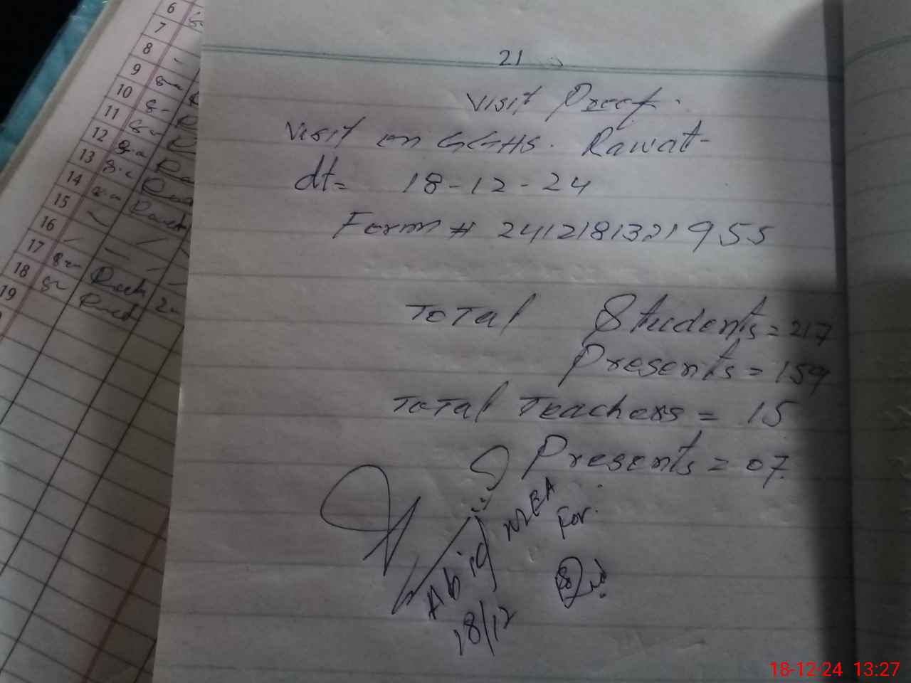 | Attendance Register | Head Teacher | MEA with School | Visit Proof |