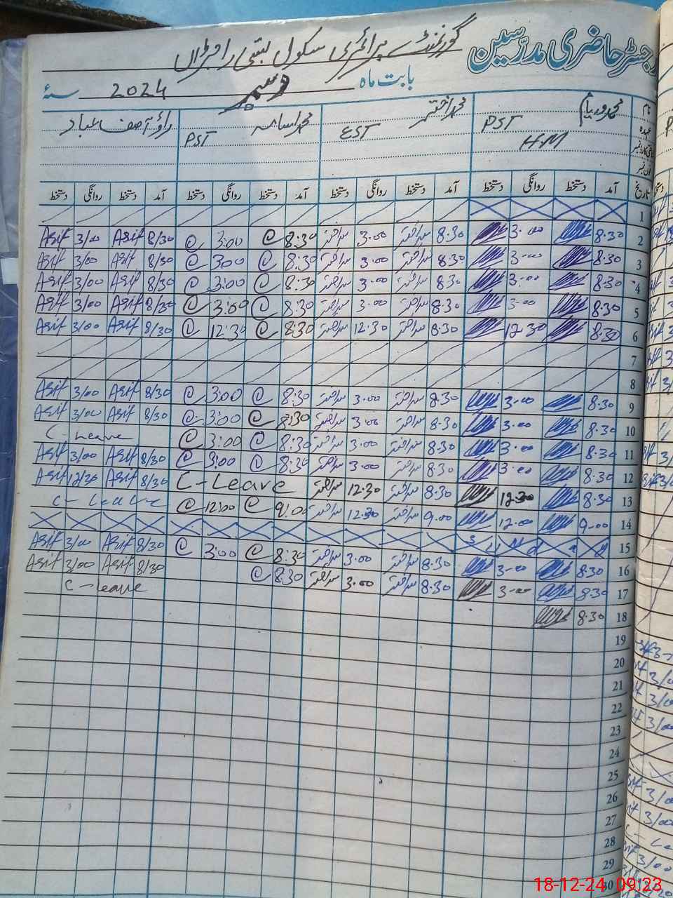 | 31**** | Ra**** As**** Ib**** | PST | Regular | 2 | 0 | 0 | 0 | 0 | 0 | 0 | 0 | 2 | Casual |